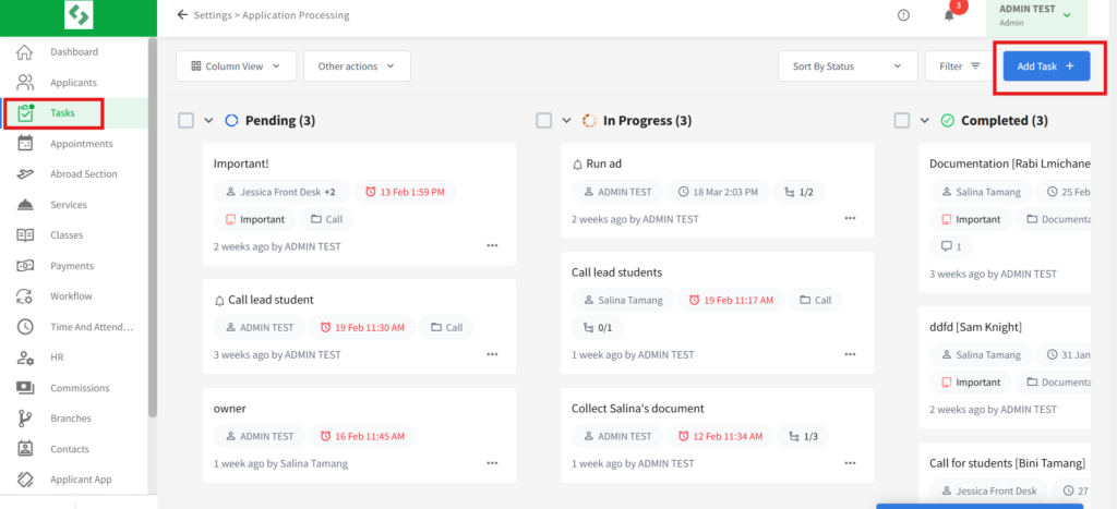 - “Assign Student” ( Here the student could be associated to the task being created)